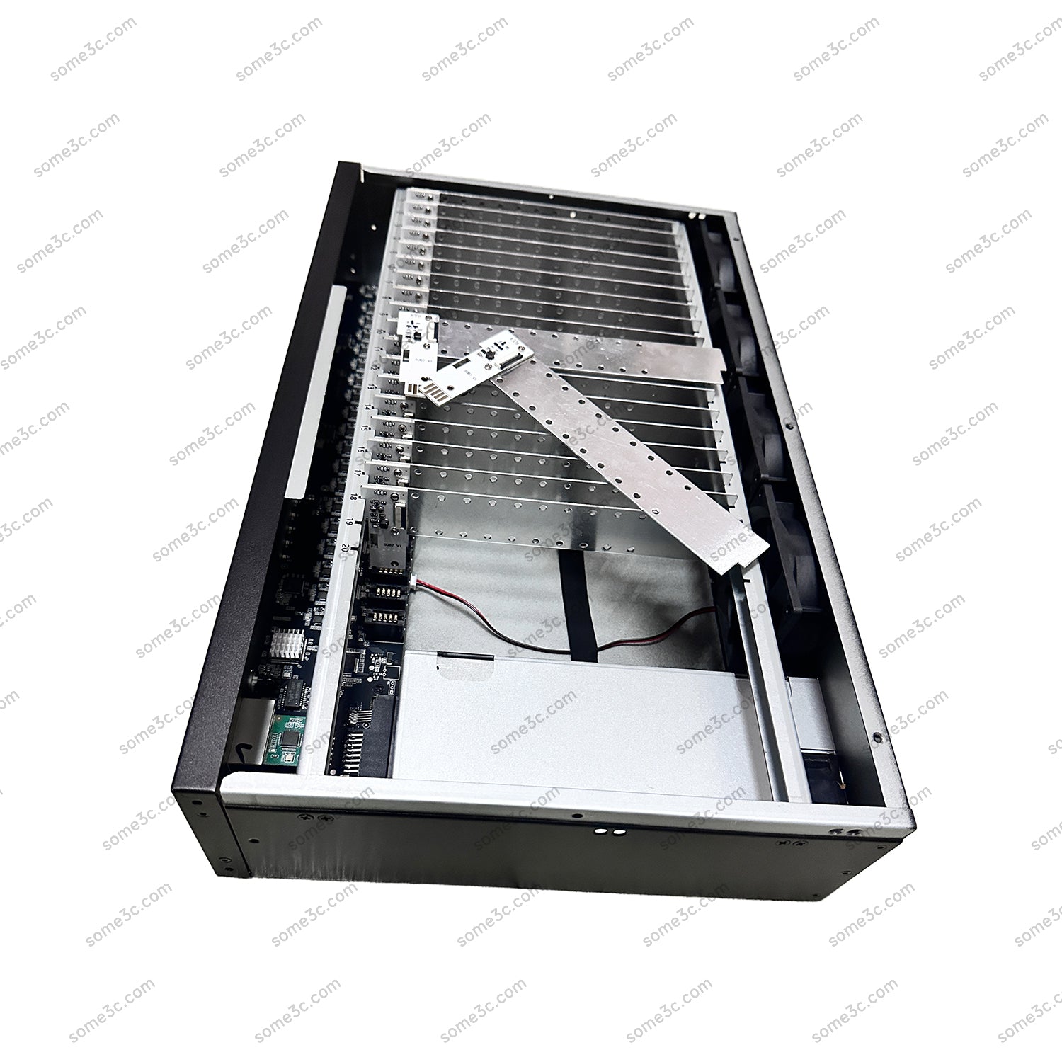 Nuestro chasis para teléfonos móviles es una solución de vanguardia diseñada para profesionales, desarrolladores y entusiastas del desarrollo de software móvil, las pruebas de aplicaciones y la creación de contenido. Este chasis compacto y duradero proporciona 20 ranuras para placas base de teléfonos inteligentes Android, integrándose perfectamente con la placa base del teléfono (no incluida) para una gestión eficiente de múltiples dispositivos en configuraciones de bricolaje.